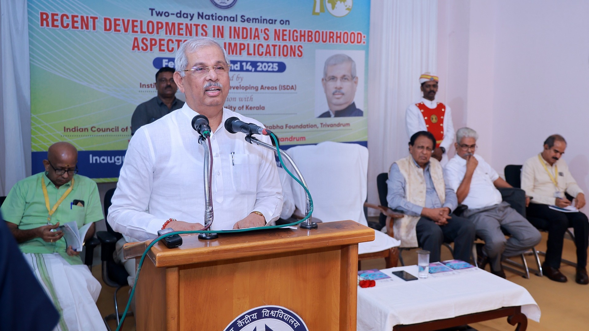 Hon’ble Governor of Kerala  Shri Rajendra Vishwanath Arlekar releases ISDA Journal Vol.35 Number 2 at the inaugural session of the national seminar on ‘Recent Developments in India’s neighbourhood: Aspects and implications’ on 13th February 2025.